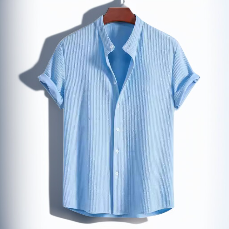 涼しげな無地メンズ半袖シャツの着用イメージ