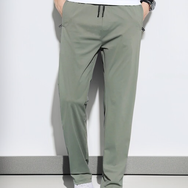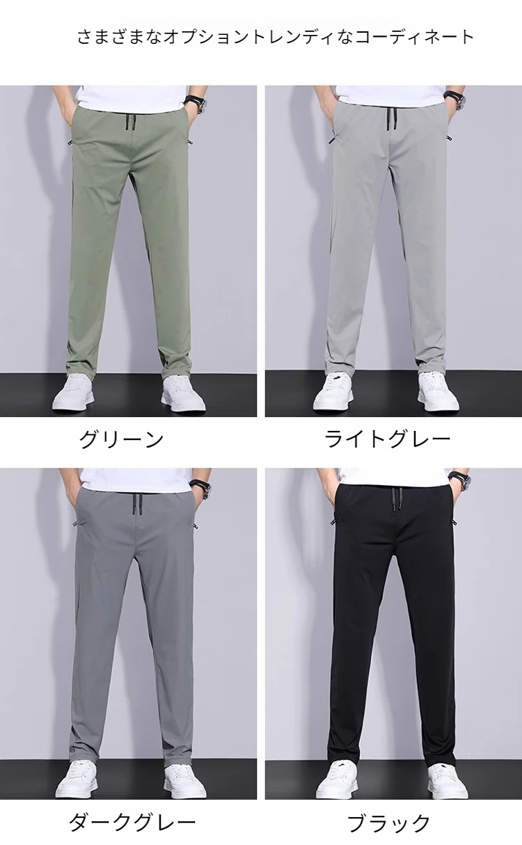 夏のメンズゆったりストレッチ極薄アイスシルクカジュアルパンツ アップグレードされた通気性ストレートメンズパンツ刺繍アイスパンツ